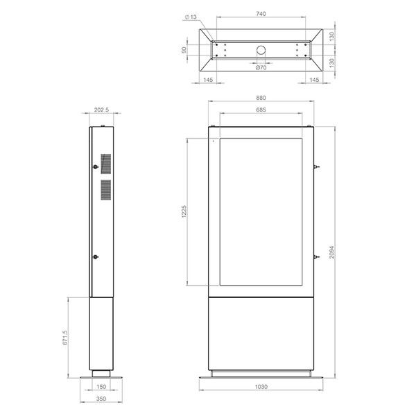 Тотемна стойка за външна инсталация на дисплей 55" в портретна ориентация.