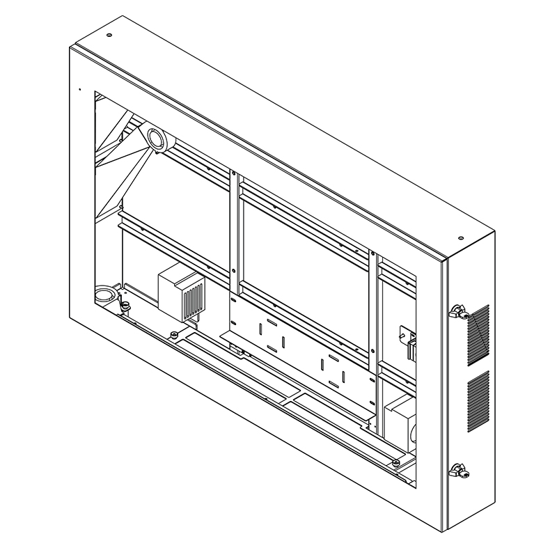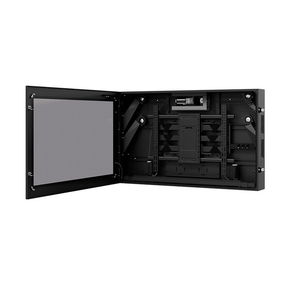 Hagor SOPW 55” Landscape е висококачествен защитен корпус за AV оборудване произведен в Германия. Тази висококачествена външна кутия е идеална за монтаж на дисплеи до 55" (140 см) диагонал. VESA стандарта е от 200 x 200 мм до 800 x 600 мм. Стойката има функционалност за издърпване до 648 мм, осигуряваща оптимална достъпност при обслужване. Възможно е да бъде добавено химично антирефлексното защитно стъкло с дебелина 6,4 мм ефективно защитава екрана. Корпусът отговаря на класове на защита IP 65 / NEMA 4 (отпред) и IP 54 (отзад). Защитният корпус се заключва, осигурявайки защита срещу неоторизиран достъп и вандализъм. Предвидено е място за поставяне на мини компютър или например приемник. Управлението на температурата, контролирано от термостат и сензор, включително въздушна завеса пред панела, позволява работа в температурен диапазон от -25 °C до +40 °C. Удароустойчивото и надраскващо прахово покритие е без разтворители и стандартно е в тъмносиво (C5, RAL 7016). За безупречна работа на системата е задължително вградения дисплей да е за външен монтаж.