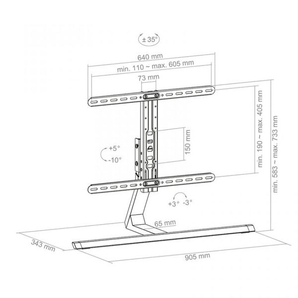 Регулиране на височината на дисплея от 583 мм до 733 мм.