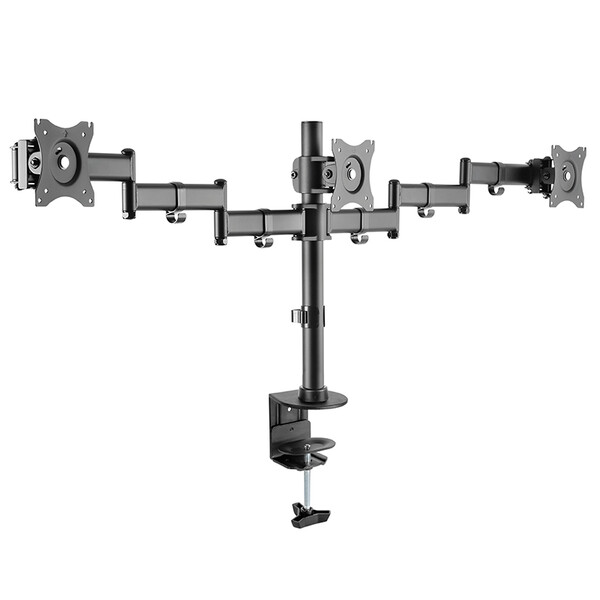 Hagor Tablemount KB Triplel е произведена в Германия стойка за три извити монитора от 15" до 27" или диагонал от 38 см до 68 см. Стойката позволява накланяне, завъртане и регулиране на височината и е подходяща за извити монитори. VESA монтажът е 75 x 75 и 100 x 100 мм. Мониторите могат да бъдат инсталирани в портретен или пейзажен формат. Форматът може да се променя от пейзажен на портретен и обратно по всяко време. Монтажът може да се извърши или със скоба за маса (не е необходимо пробиване), или с винтове. Необходимите крепежни материали за двата варианта са включени в комплекта на стойката.При използване на скобата се поддържат ширини на плота от 10 до 88 мм, а винтовата конструкция може да се използва за плотове с ширина от 10 до 80 мм. Мониторът може да се накланя на ±45° и да се завърта на ±45°. Височината може да се променя между 100 и 450 мм с помощта на инструменти. Повърхността е устойчива на удар и надраскване. Максималното натоварване е 3х8 кг.