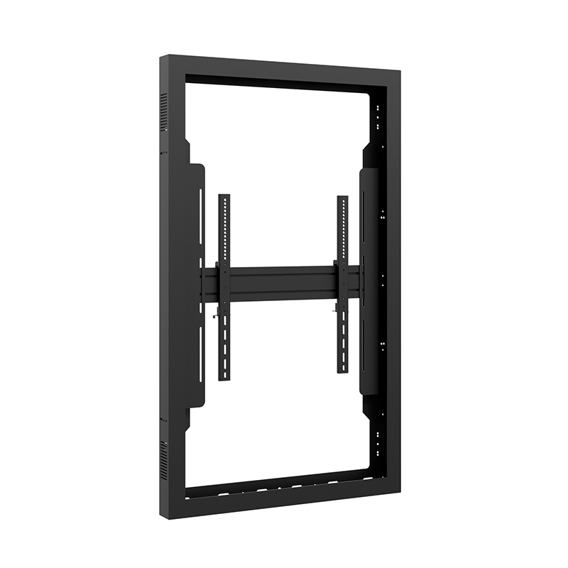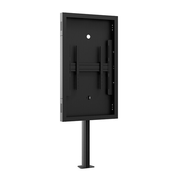 Hagor vis-it Enclosure 65” Portrait e защитен корпус немско производство за монтаж на дисплей 65" във вътрешни условия. VESA размерът е максимум 600 x 600 мм. Вграденият дисплей може да се монтира само в портретна ориентация. Благодарение на интегрираните въздушни отвори се осигурява ефективна циркулация на въздуха, предотвратявайки натрупването на топлина вътре в корпуса. Защитният корпус е подходящ за дисплеи с различна дълбочина, тъй като е с гъвкаво регулиране на дълбочината чрез прорез. Повърхностите са защитени с прахово покритие в черно, без разтворители, устойчиво на удар и надраскване, което осигурява трайно качество на повърхността при ежедневна употреба. Като допълнителен аксесоар се предлага заден капак за допълнителна защита / артикулен номер 5097/.
