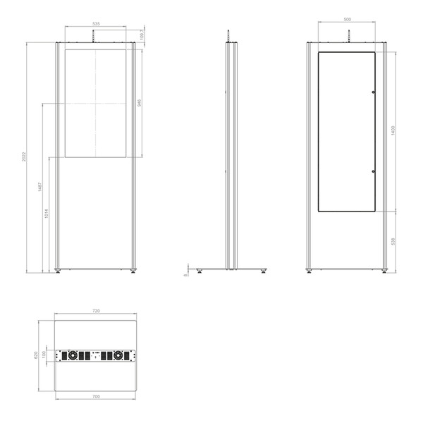 Тотемна стойка за вътрешна инсталация на дисплей от 49" до 55" в портретна ориентация.