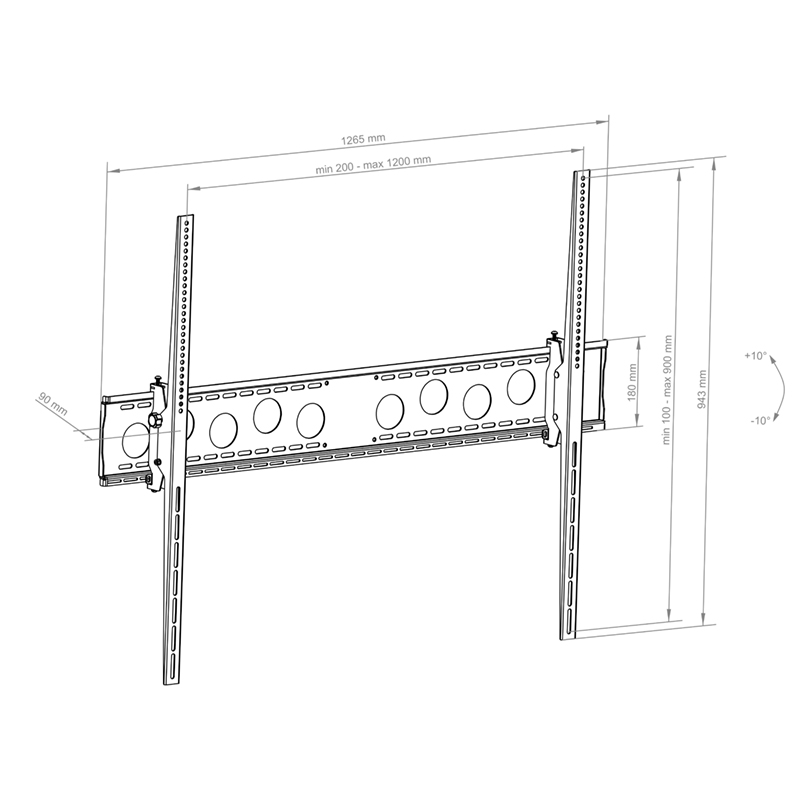 Hagor WH 120 T – HD e стойка произведена в Германия. Подходяща е за монтаж на стена на дисплеи с размер на диагонала от 75" до 130“ или от 191 см. до 330 см. Ориентацията на дисплея може да бъде само пейзаж. Стойката предлага възможност за накланяне на дисплея в рамките на ±10°. Hagor WH 120 T – HD разполага със 125 отвора за опционално адаптиране към други стойки или таванни системи Hagor. Стандартното VESA закрепване е от мин. 200 x 200 мм до макс. 1200 x 900 мм. Стойката е изключително здрава с максимално натоварване до 125 кг. Покритието на сотйката е защитено от удар и надраскване. Разстоянието до стената при монтажа е само 90 мм. За настройка на оптималната височина с възможна компенсация до 10 мм.