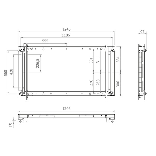 Размери: Ш 1246 x В 636 x Д 104 мм (Пейзажна ориентация, с дисплей), Ш 636 x В 1246 x Д 104 мм (Портретна ориентация, с дисплей)
