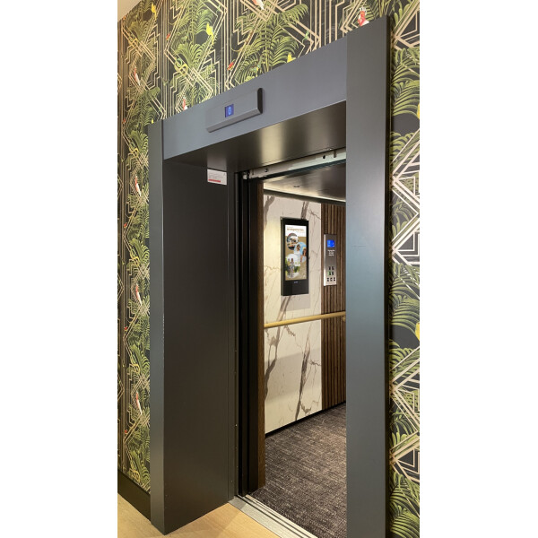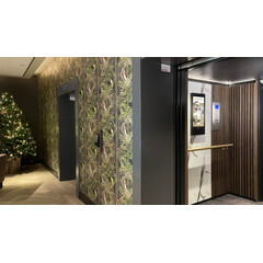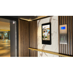 Монтаж на стената пред асансьора. Дисплей Invite 21.5 е изключително подходящ за инсталация освен вътре в асансьора, така и на стената пред него. Инсталацията на два дисплея Invite 15 - пред и вътре в асансьора завършва визията на тази зона от бизнес сградата, както създава повече възможности за визуализация на информация и рекламни послания към посетителите.