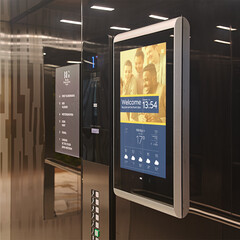 Връзка за данни. Както за дистанционна поддръжка, така и за актуализации на съдържанието е важно дисплеят да е достъпен от разстояние. Следователно дисплеят трябва да е свързан към интернет мрежата на сградата. Интернет в асансьор понякога може да бъде предизвикателство, защото има постоянно вертикално движение.