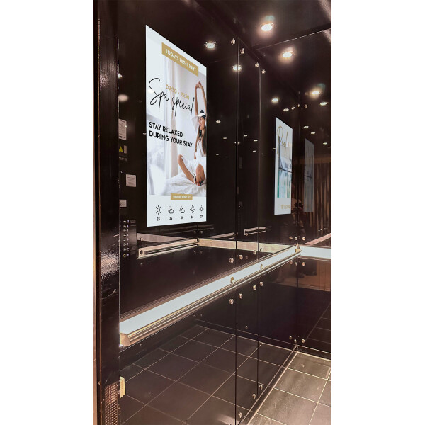 Invite 27 е професионален дисплей предназначен за монтаж в асансьор. Рекламен дисплей Invite 27 предоставя идеална възможност за визуализация на рекламни послания или информационни съобщения към потребителите докато се возят в асансьора на хотела, обществената сграда или институция или бизнес сграда. Асансьорите са много повече от преходни пространства в сградата, тъй като предлагат възможност за фокусирано въздействие върху потребителите. Използването на информационен дисплей в асансьора дава възможност за ефектно и атрактивно поднасяне на информация или рекламно послание на Вашите посетители. Дисплей за асансьор Invite 27 се откроява с елегантен дизайн и широки възможности за персонализиране, което го прави идеално подходящ както за корпоративна, така и за обществена среда.