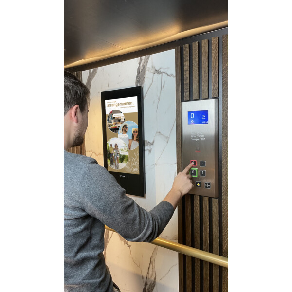 Връзка за данни. Както за дистанционна поддръжка, така и за актуализации на съдържанието е важно дисплеят да е достъпен от разстояние. Следователно дисплеят трябва да е свързан към интернет мрежата на сградата. Интернет в асансьор понякога може да бъде предизвикателство, защото има постоянно вертикално движение.