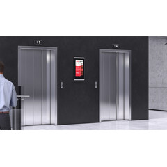 Монтаж на стената пред асансьора. Дисплей Invite 46 е изключително подходящ за инсталация освен вътре в асансьора, така и на стената пред него. Инсталацията на два дисплея Invite 46 - пред и вътре в асансьора завършва визията на тази зона от бизнес сградата, както създава повече възможности за визуализация на информация и рекламни послания към посетителите.