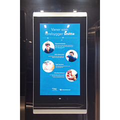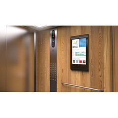Връзка за данни. Както за дистанционна поддръжка, така и за актуализации на съдържанието е важно дисплеят да е достъпен от разстояние. Следователно дисплеят трябва да е свързан към интернет мрежата на сградата. Интернет в асансьор понякога може да бъде предизвикателство, защото има постоянно вертикално движение.