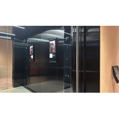 - Дисплей 55" frameless, безбордов за вграждане. Специално проектиран да бъде вграден в стената на асансьора с безрамков капак с 5 мм. стъкло и заоблени ъгли с радиус 3 мм;
