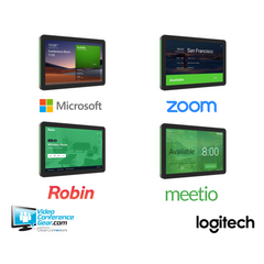 Logitech Tap Scheduler се интегрира с водещи решения за планиране на стаи като a Панел на Microsoft Teams Увеличаване на дисплея за планиране на стаи Панел за планиране, захранван от Robin AppSpace Панел за планиране на Meetio