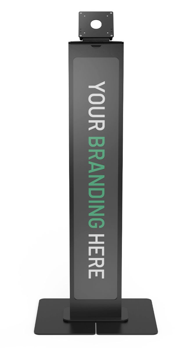 Максимална персонализация и Branding. Централната колона на стойката разполага с голям панел, който може да бъде изцяло брандиран с вашето лого или рекламна графика. Това превръща стандартната стойка в мощен маркетингов инструмент, който комуникира идентичността на Вашия бранд, докато потребителите взаимодействат с дисплея.