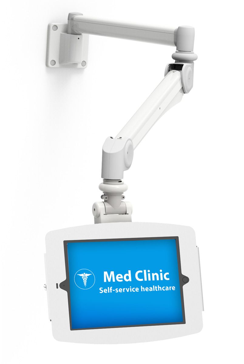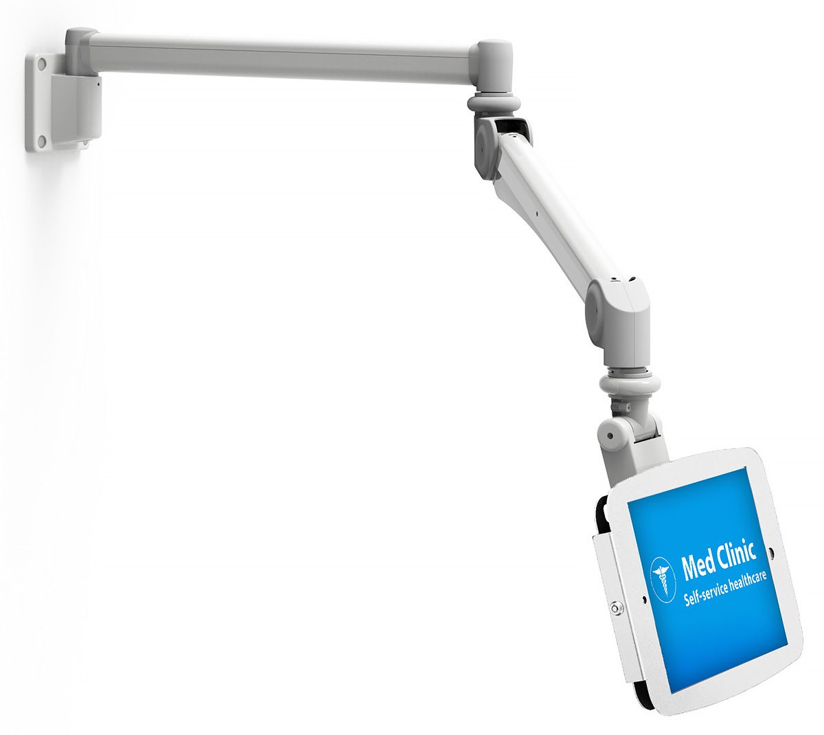 Maclocks Medical Monitor Mount with Extra Long Articulating Arm e професионална шарнирна стойка за стенен монтаж с обхват до 122 см. Проектирана специално за болнични заведения, стоматологични клиники и диагностични кабинети. Осигурява максимална гъвкавост при работа с пациенти.