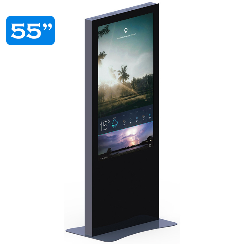 Minerra T55MN5 е свободностоящ дигитален информационен киоск или тотем. Решението е подходящо за реклама в търговски обекти, информационни центрове, летища, гари, музеи, държавни институции, обществени пространства и хотели. Дигитален тотем Minerra T55MN5 има възможност за добавяне на сензорна функция. Решението за дигитална реклама или дигитална табела има възможност за вграждане на компютър с високопроизводителен плейър и използване на софтуер за визуализация на изображенията, с което се превръща в напълно завършено решение за дигитална реклама и презенетиране на информация. Цвета на външния дизайн е по избор. Minerra T55MN5 - 55" дигитална табела е със свободностоящ дизайн с опция за закрепване към пода. Електрическото захранване и подаване на данни се осъществява от задния панел или през подовата плоча. Дигитален информационен павилион Minerra T55MN5 е защитен със заключваща се обслужваща врата за достъп. Елегантният и функционален дизайн на дигитален тотем 55" Minerra T55MN5 се постига с впечатляваща алуминиева рамка и преден панел от вандалоустойчиво закалено стъкло. Други размери от серията дигитални табели Minerra са моделите: 43" Minerra T43MN5, 50" Minerra T55MN5, 65" Minerra T65MN5.