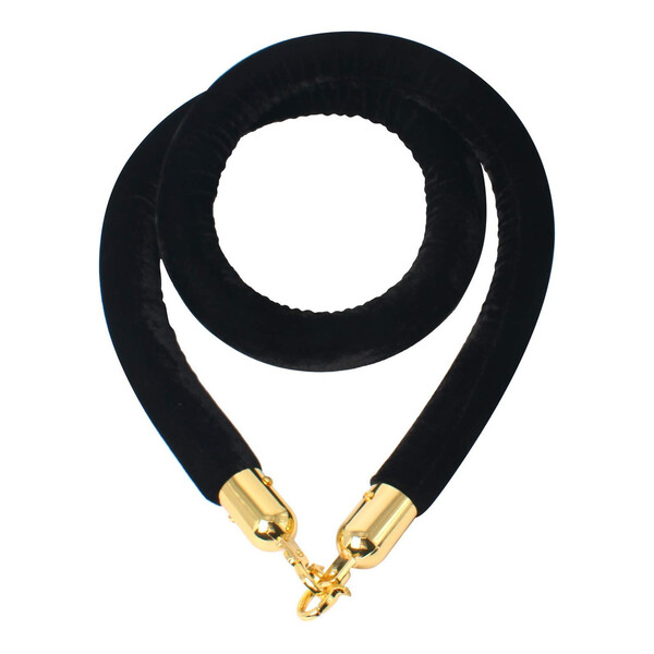 Much & More въже за ограничително колче за преграждане е изработено от високо качество велур в черен цвят. От двете страни на ограничителното въже са поставени заключващи карабини със спусък. Карабините са метални клас 201 и са в златен цвят. Поставяйки Much & More бариерно въже в комбинация с Much & More ограничително колче имате възможност да създадете елегантен вид на пространсвата в залата.