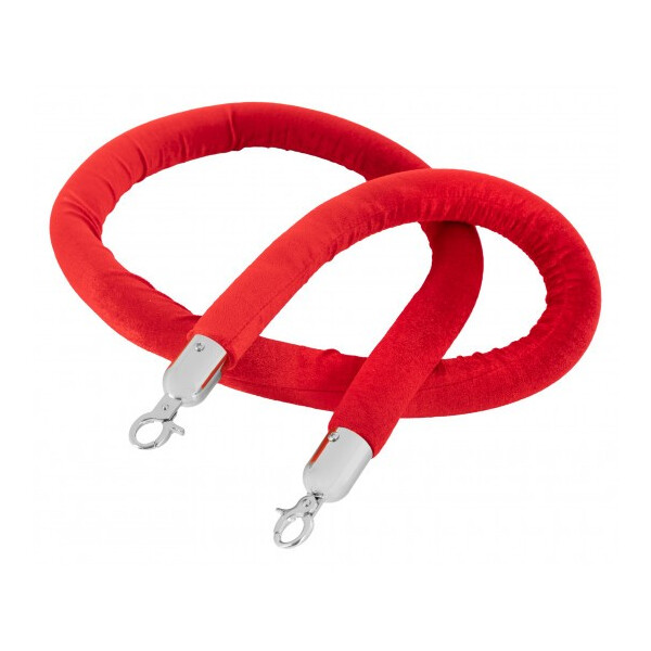 Much & More въже за ограничително колче за преграждане е изработено от високо качество велур в червен цвят. От двете страни на ограничителното въже са поставени заключващи карабини със спусък. Карабините са метални клас 201 и са сребърен цвят. Поставяйки Much & More бариерно въже в комбинация с Much & More ограничително колче имате възможност да създадете елегантен вид на пространсвата в залата.
