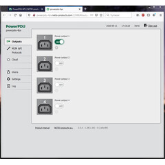 - Netio Power PDU 4PS EU може да се конфигурира с уеб браузър (позволява контрол на изхода, връзка с Netio Cloud, Open API комуникационни настройки и др.);