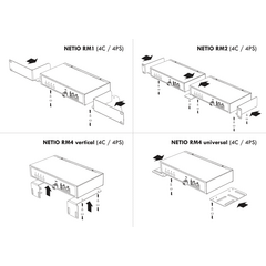 - Netio Power PDU 4PS EU обикновено се използва за разпределение на електричество в 19" шкаф (шкаф) в център за данни;