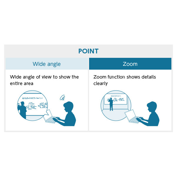 - Високо качество на видео стрийминг. Използването на онлайн конферентна система за дискусия или обучение в класната стая или залата за видеоконферентни срещи позволява комуникация по всяко време и навсякъде. Онлайн конференциите и онлайн класовете обаче имат някои недостатъци като намалено чувство за участие и прекъсвания, причинени от лоши комуникационни условия. Стрийминг камера Panasonic AW-HE20WE заснема реалистични изображения благодарение на гъвкавия си зрителен ъгъл и прави онлайн срещите по-удобни. Широкият диапазон на снимане и мащабирането с голямо увеличение осигуряват непокътната „атмосферата на зала“.Камера Panasonic AW-HE20WE и оборудвана с широкоъгълен обектив и функция за увеличение, Panasonic AW-HE20WE надеждно улавя важни бележки на слайд или черна дъска, така че видеото да предаде ефективно урока или презентацията за по-добро разбиране. Дори и с малък брой камери, няма да има пропуснати сцени, като по този начин се гарантира надежден запис на важни презентации.