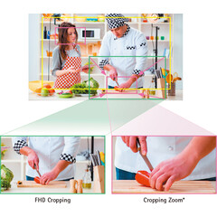 - Функция за изрязване (+ мащабиране). Изрязана част от видеото може да бъде създадена едновременно по време на извеждане на пълното 4K видео. Могат да бъдат зададени до три области на изрязване с лесна работа с помощта на контролера за дистанционна камера Panasonic AW-UE100KEJ и екрана на уеб браузъра. Включването на мащабиране при изрязване също позволява до 5x увеличение на изрязаните изображения.
