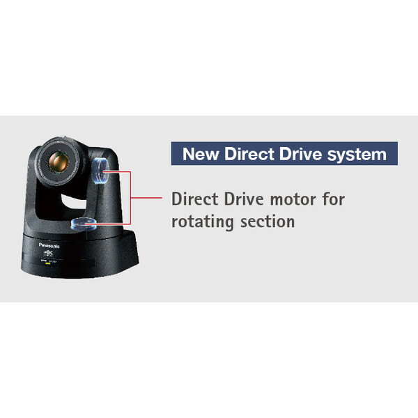 - Оперативност - Panasonic AW-UE100KEJ поддържа се широк диапазон от скорости, от бавно движение от 0,08° в секунда до свръхвисоки скорости от 180° в секунда (режим Fast2).