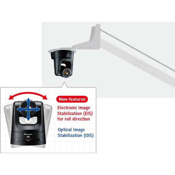 - MOS сензор тип 1/2,5. Panasonic AW-UE100KEJ е оборудвана с новоразработен 1/2,5-тип 4K MOS сензор и постига видео с висока разделителна способност.