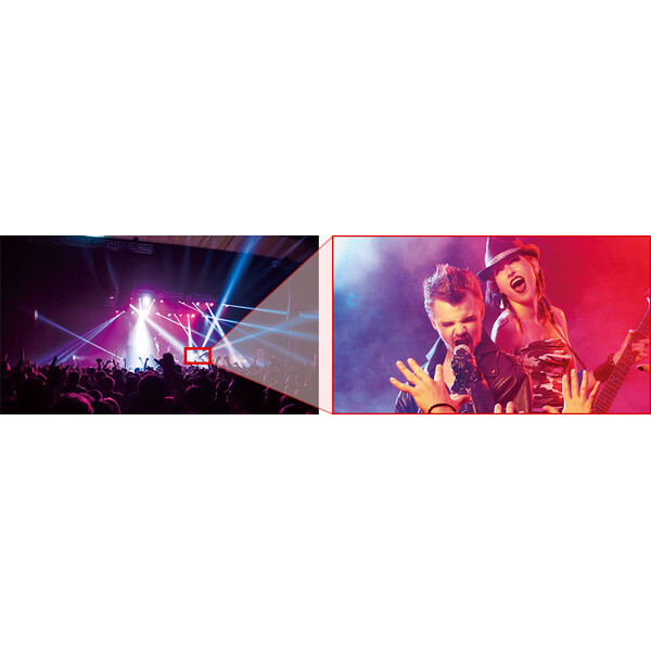 - Снимане с 24x оптично увеличение и 74,1° хоризонтален зрителен ъгъл. В допълнение към 24x оптично увеличение, включването на i.Zoom позволява мащабиране със супер разделителна способност до 36x в HD режим и 28x в 4K режим, като същевременно поддържа висока разделителна способност. 1.4x и 2x дигитален разширителен зуум също позволява ясно заснемане на отдалечени обекти, докато хоризонталният зрителен ъгъл от 74.1° позволява заснемане на широка област от ограничено пространство за инсталиране.