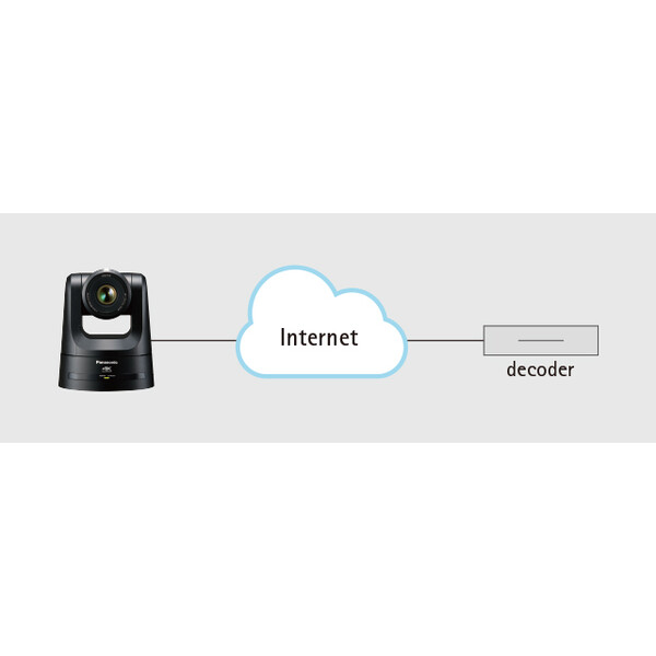 - Сигурен и стабилен протокол за поточно предаване, който намалява риска от проблеми с комуникацията. Panasonic AW-UE100KEJ поддържа SRT , протокол за видео транспорт от следващо поколение, който работи добре дори при нестабилна мрежова среда и който осигурява стабилна сигурност. Това предотвратява проблеми като прекъсване на предаването по време на създаване на програма или запис на събитие, като по този начин гарантира стабилно и надеждно поточно видео. Този протокол може да предотврати рискове като изтичане на информация, така че може да се използва безопасно за всяко видео съдържание.