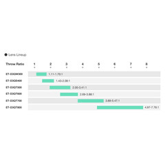 Специализирани лещи покриват всички проекционни съотношения.Ексклузивна нова гама от опционални лещи за Panasonic PT-RQ50KEJ осигурява покритие на съотношението на излъчване без пропуски от 1,11–1,70:1 до 4,97–7,76:1, адаптирайки проекциите, за да отговарят на мястото на инсталиране. Всичките шест модела поддържат увеличено увеличение, смяна на обектива, както и памет на обектива и ID на обектива за по-лесни настройки на място. Функцията AFO (Active Focus Optimizer) оптимизира фокуса въз основа на APL на съдържанието, като поддържа изображенията резки и на фокус.
