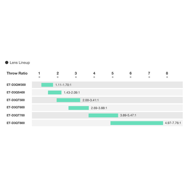 2.54–38.1 m (100–1,500 in) with new optional lens for PT-RQ50K, 17:9 aspect ratio |