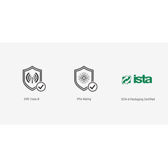 EMC и Ista сертификация. Видео панелите за видеостена Samsung 55VHR-R покриват строгите изисквания на стандарта EMC клас В за излъчване на електромагнитини вълни и гарантират пълната безопасност за очите на зрителите. Опаковката на дисплея също е преминала строго тестване в 4 етапа в сертифицирана от ISTA лаборатория. Проектирана е така, че рискът от увреждане на панела при транспортиране да бъде сведен до минимум.