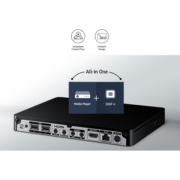 Samsung предлага комплексно решение за видеостена. Управлението на съдържанието на изображението се осъществява чрез UHD Signage Player Box - платформа. Устройството е компактно, тежи само 0,6 кг, а вградените в него плейър MagicINFO S Player 6 и платформа SSSP 6 го превръщат в перфектното решение за ползвателите на Samsung VHR-R професионални дисплеи.