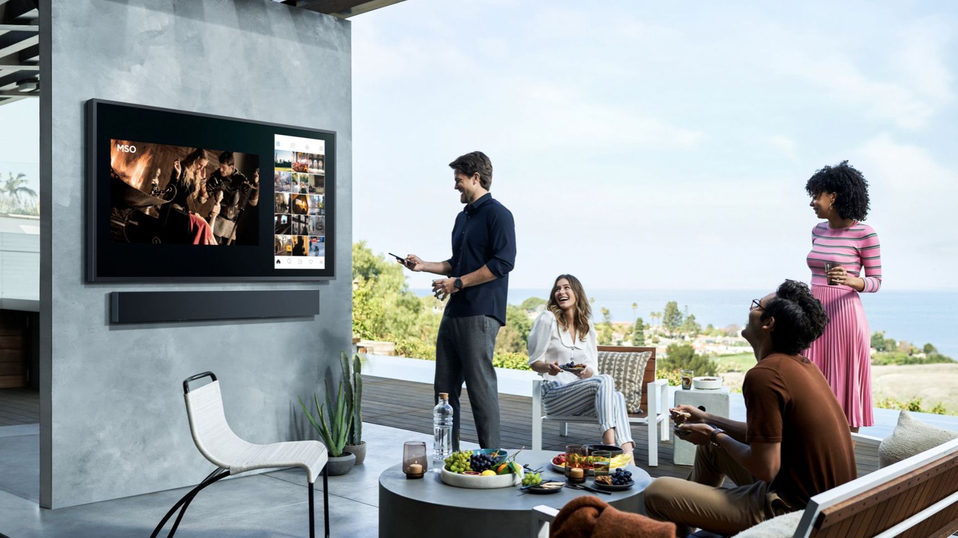 Ярко съдържание, дори отвън. С 1500 нита яркост, Pro TV Terrace Edition осигурява същото забавление и промоционално изживяване, на което обикновено се наслаждавате вътре в сенчести външни среди.