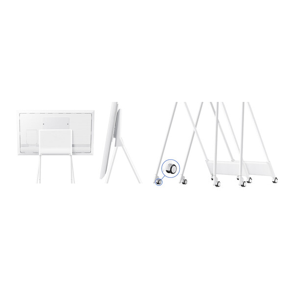 Samsung Flip Stand WM55R е стойка на колела за надеждно поставяне на интерактивен дисплей Samsung Flip 55" и 65". При използването на стойката с дисплей 55" имате възможност за завътане на позицията на дисплея от портретна в пейзажна. При използването на стойката със 65" дисплей позицията е само пезаж. Чрез тази поставка на колела, можете лесно да премествате интерактивния дисплей от зала в зала сигурно и удобно. По този начин интерактивния дисплей Samsung Flip Pro се превръща в напълно завършено мобелно решение.