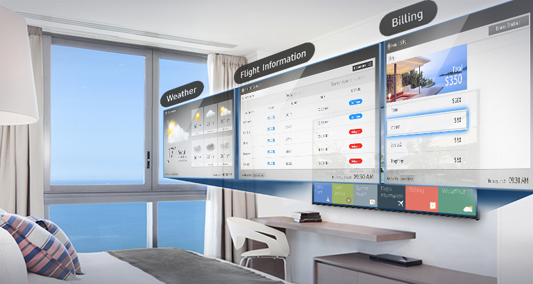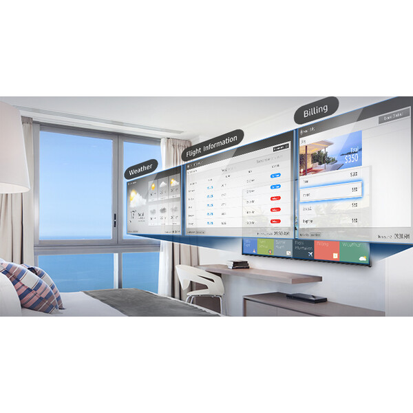 Създайте впечатляващ начален екран.Всеки хотелски телевизор Samsung включва интуитивен и персонализируем начален екран, който улеснява обмена на съдържание между хотелите и техните гости. Лесно можете да персоналицирате рекламното съдържание показвано от телевизор за хотели Samsung HT690UX 43" Hotel TV - оферти и брандинг на хотела.