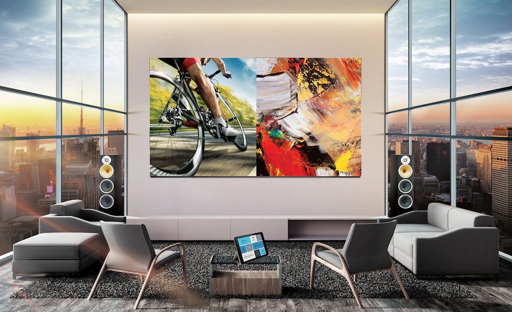- При използването на Samsung The Wall 110" 2К не са необходими допълнителни периферни устройства. Всичко, което е небоходимо е включено в комплекта на LED стената - от контролната кутия и стенните скоби до високоговорителите и декоративните рамки. Не са необходими допълнителни покупки или компоненти.
