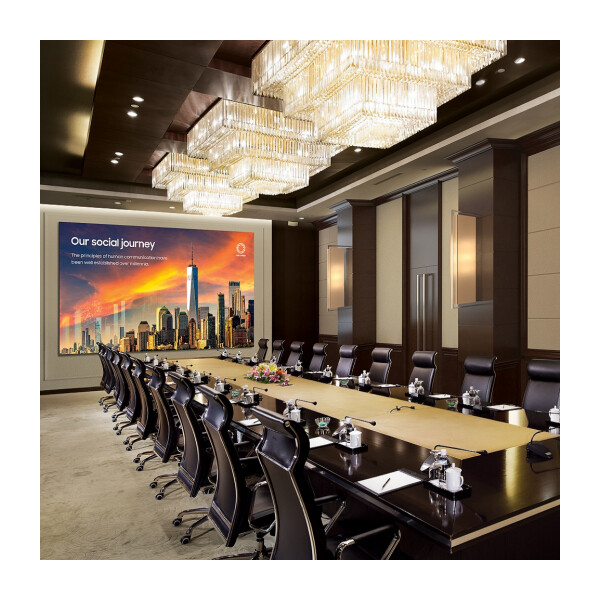 Samsung IAB 110 2K е последното поколение LED стена на Samsung от типа All in one решение. Технология, качество, надеждност - всичко е на максимално най - високото ниво! Диагоналът на LED стена Samsung The Wall е 110", резолюцията е 2К. Samsung IAB The Wall 110" LED стена All in One 2К е изключително подходящо решение за елегантни и големи конферентни зали, лоби на хотел или помещения с голям размер нуждаещи се от надеждно и впечатляващо решение за визуализация в голям формат.