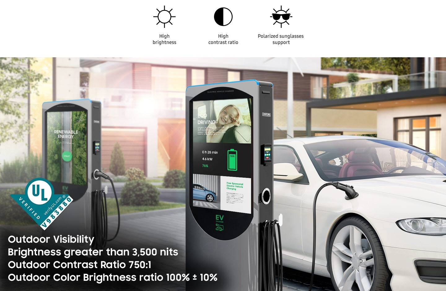 Външен рекламен дисплей 46" Samsung OH46B-S е идеалното и сигурно решение за визуализация на информация и реклама във външни условия. Несравнима яркост от 3 500 нита и режим на работа 24/7, защитен корпус и автоматичен сензор за регулиране на яркостта спрямо околната светлина - това са основните характеристики на професионален външен екран 46" Samsung OH46B-S. Външен рекламен дисплей 46" Samsung OH46B-S е подходящ за вграждане в специализирана стойка за външна инсталация и така напрактика като завършено решение се получава външен рекламен дигитален тотем.
