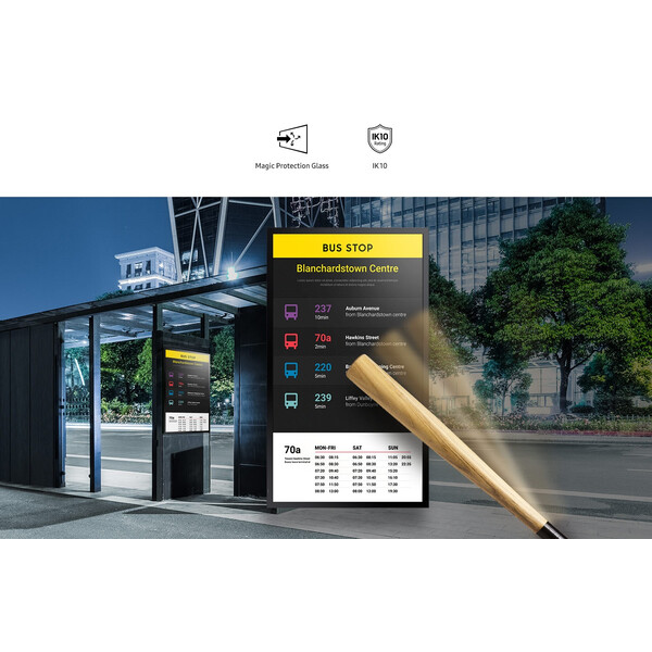 Професионален широкоформатен дисплей 46" за външна употреба Samsung OH46B-S е защитен с Magic Protection Glass – стъкло с технология за елиминиране на отблясъците от слънчевата светлина - гаранция за перфектната визия на рекламните изображения.