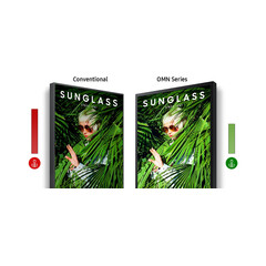Перфектно изображение въпреки силната слънчева светлина - Рекламен дисплей за витрина Samsung OM46B притежава яркост от 4000 нита и високо контрастно съотношение от 6000:1, дисплеят остава ярък и ясен, предоставяйки безкомпромисна картина, която ще привлече вниманието на потенциалните клиенти – дори при пряка слънчева светлина.