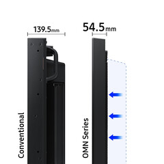Изключителна елегантност и функционалност. Рекламен дисплей Samsung OM46B има забележително тънка 54,5 mm рамка, благодарение на която дисплеят се превръща в част от витрината на магазина.