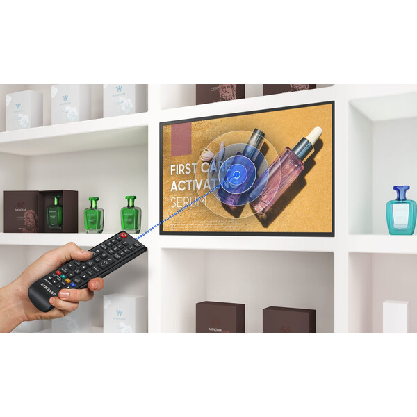 Удобно управление на дисплея. С централен IR, всеки дисплей получава IR сигнали директно към панела, което позволява лесно и удобно дистанционно управление. Когато е монтиран, Samsung QB24C-T не изисква удължителен кабел за IR приемник. Вграденият Wi-Fi позволява безжично дистанционно управление както за съдържание, така и за дисплея.