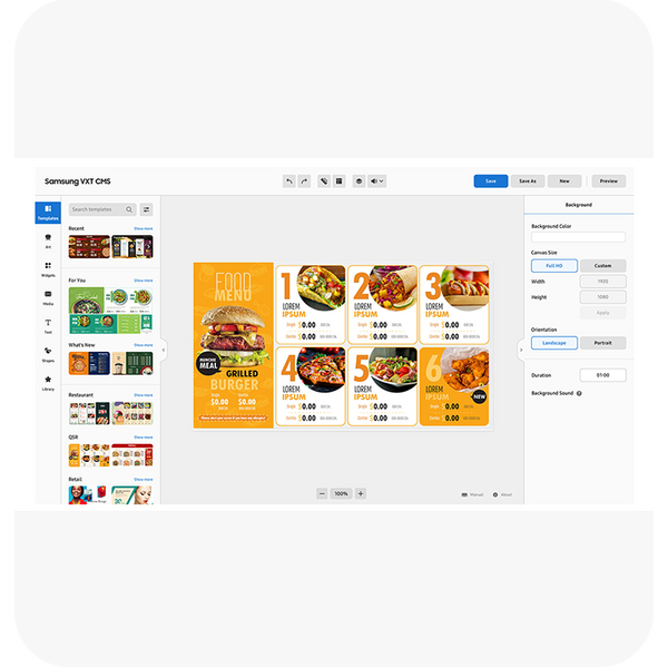 - Samsung VXT CMS е облачно базирано решение, което обединява възможности за управление на съдържание и отдалечено управление на устройства, което позволява на потребителите да управляват дистанционно настройките на хардуера и да отстраняват проблеми, като същевременно без усилие създават и внедряват съдържание без необходимост от предварително обучение.