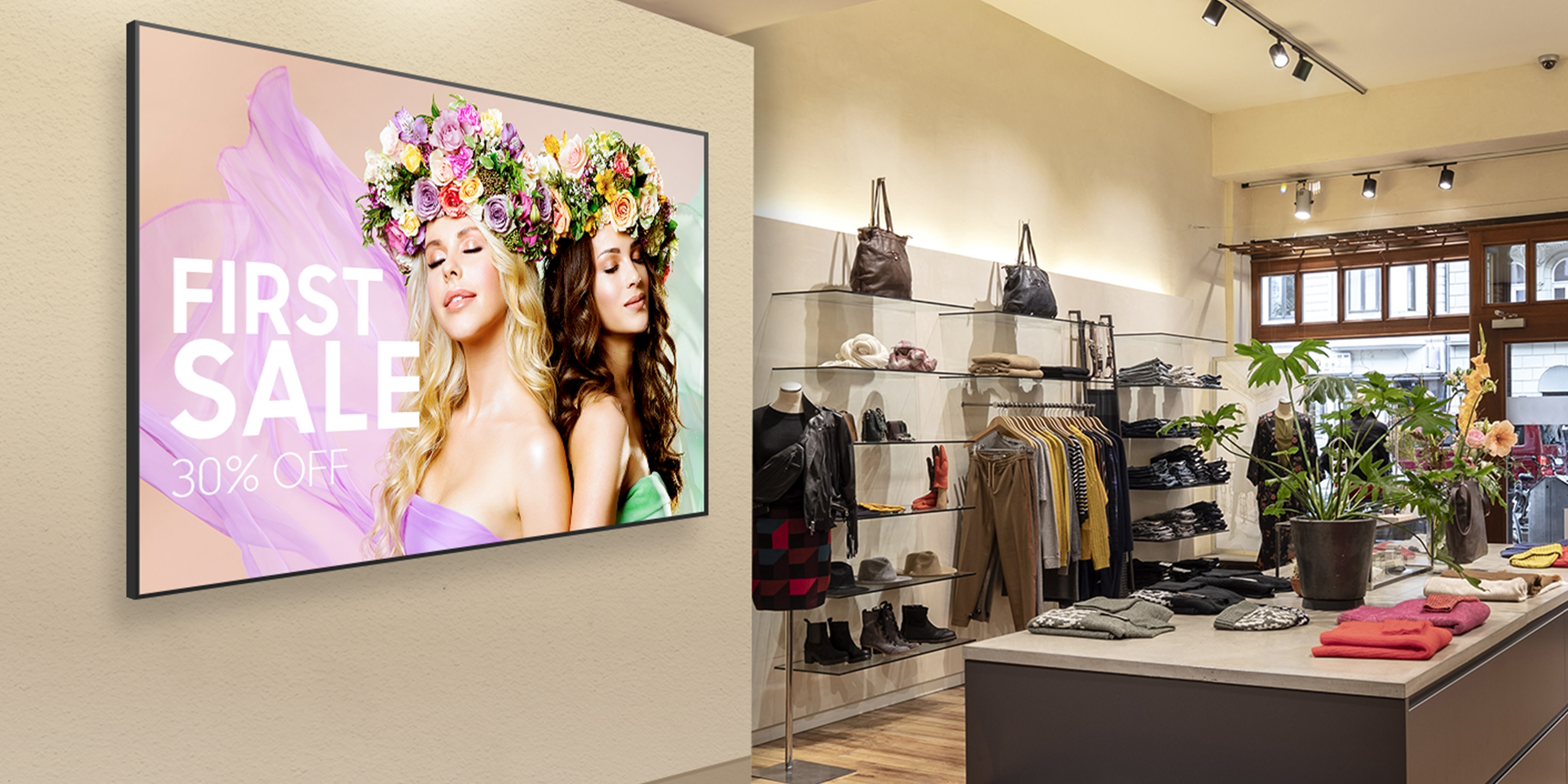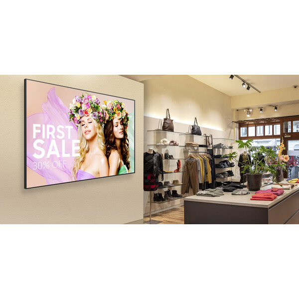 Широкоформатен публичен дисплей 65" Samsung QE65T предлага изключително елегантен безрамков дизайн, подходящ за всяка бизнес среда.