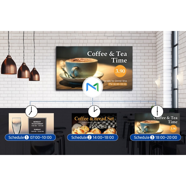 Рекламен екран 65" Samsung QE65 предлага на потребителите напълно интегрирана система за контрол и управление на рекламната информация. Samsung MagicINFO Lite Player гарантира лесното управление на съдаржанието. Възможно е добавяне на информация от персонален компютър или чрез диретнта връзка на диспле с USB памет.