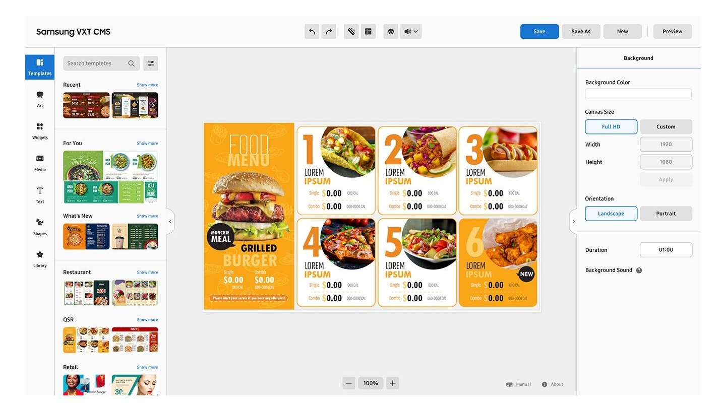 Лесно и удобно използване. Рекламен дисплей Samsung QH75C предлага удобство чрез лесен достъп до най - често използваната информация от дисплея, позиционирана на началния му екран. Необходимо е само едно кликване.