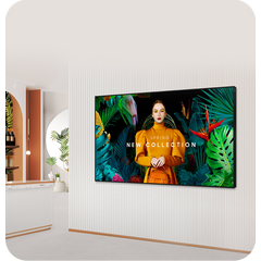 Samsung QH75C е нов модел впечатляващ рекламен дисплей с ултратънък дизайн, превръщащ го в ефективно решение за реклама на продукти или излъчване на информация в търговски обекти, кафенета, рецепции, информационни центрове. Размерът от 75" на рекламен дисплей Samsung QH55C е изключително удобен за рекламни цели в търговски обекти, тъй като е оптимален за перфектна видимост и фокусиране на вниманието на клиента в тесни и ограничени рекламни пространства.