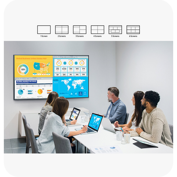Безжично споделяне на екрана по време на срещата в конферентната зала. С функцията Smart View+ можете бързо и безжично да споделите екрана на дисплея си с другите членове на екиап. Потребителите вече могат да активират функцията за споделяне на екрани в началото на всяка работна среща. Това ще позволи на модератора на срещата да превключва между екраните с един клик на мишката.