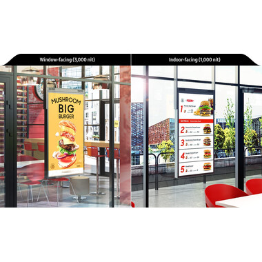 - По-добра видимост дори на слънчева светлина.Сензорен дисплей Samsung QM43B предлага подобрена видимост чрез покритие на дисплея без отблясъци, което премахва отраженията, които могат да попречат на ангажираността на клиента, докато матовото покритие създава по-гладко докосване.